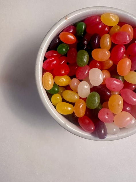 I like Emily Dickinson - Can’t top “Hope is the thing with feathers” and so forth. But also like what appears to be an attractive assortment of jelly beans. Peace and love back to you, until next time.
