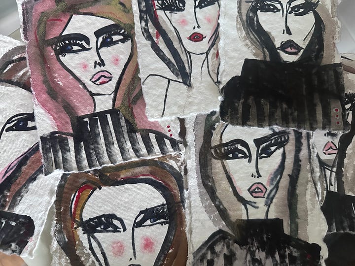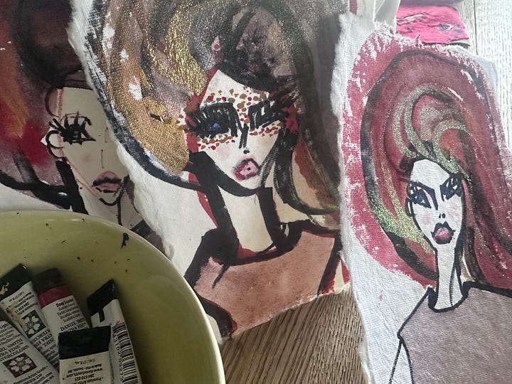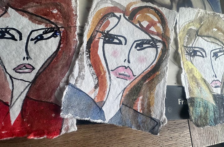 I’ve been painting a lot and there will be ladies in the shop soon. I can’t wait to share these with y’all—they are spirited, imperfect sketches but somehow they have my soul right now. One art form leads to the next for me—they are somehow characters in The Healing Places (that’s the working title of the novel) as I think I’m looking for the matriarch(s). Anyway—I’ll get them up for sale soon and remember that paid subscribers get access twenty-four hours before everyone else and a 20% discount.